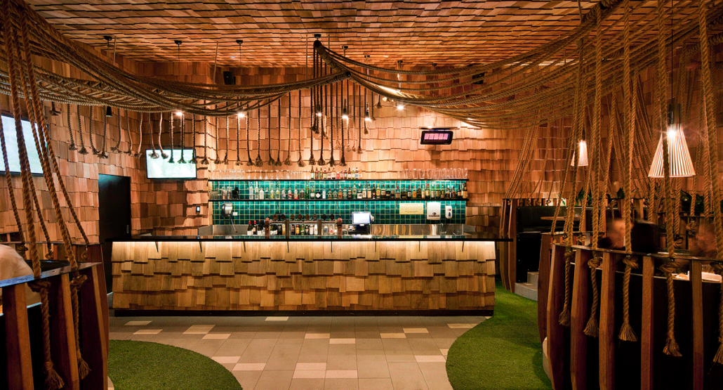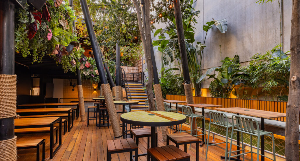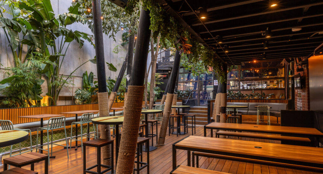 With a clever mix of both seated and standing space, the upstairs timber slated Terrace Bar comes with three large roped jungle-style booths and a private bar. The space can be extended to include the balcony to increase capacity